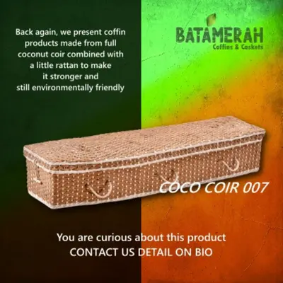 Back again, we present coffins products made from full coconut coir combined with a little rattan to make it stronger and still environmentally friendly